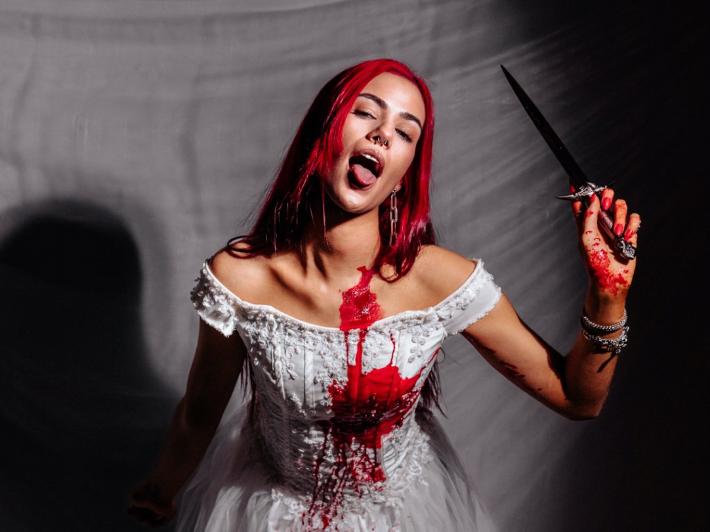 Don’t be alarmed by the bloody single artwork and accompanying photoshoot. They pay homage to Lady Gaga’s iconic VMAs performance of ‘Paparazzi’, and the photos represent the notion of destroying yourself for love.